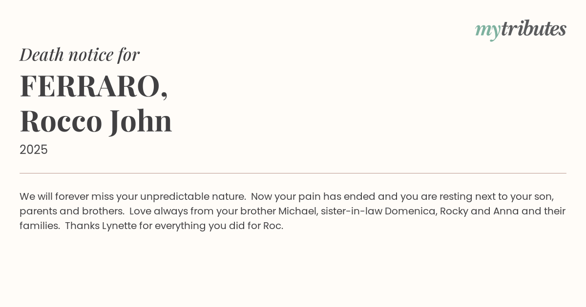 Love always from your brother Michael, sister-in-law Domenica, Rocky and Anna and their families.