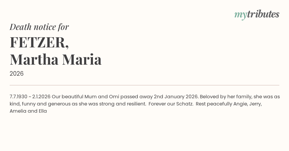 Our beautiful Mum and Omi passed away 2nd January 2026.