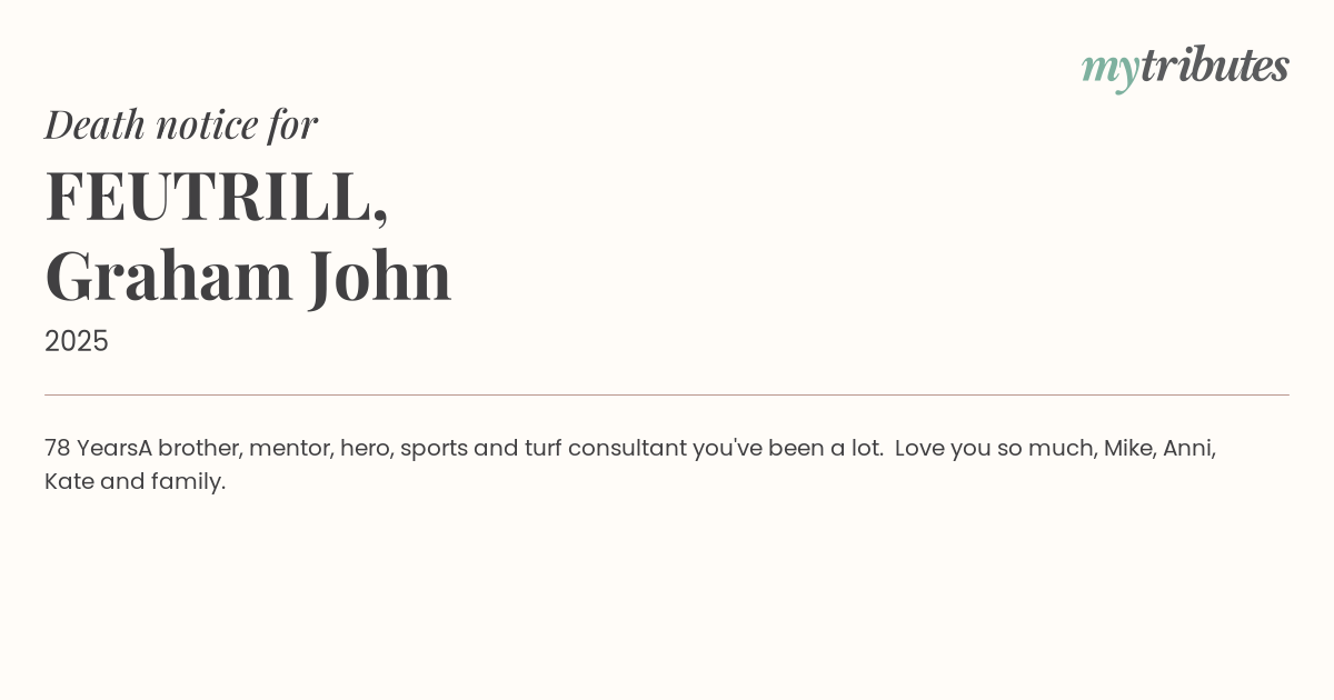 A brother, mentor, hero, sports and turf consultant you've been a lot. Love you so much, Mike, Anni, Kate and family.
