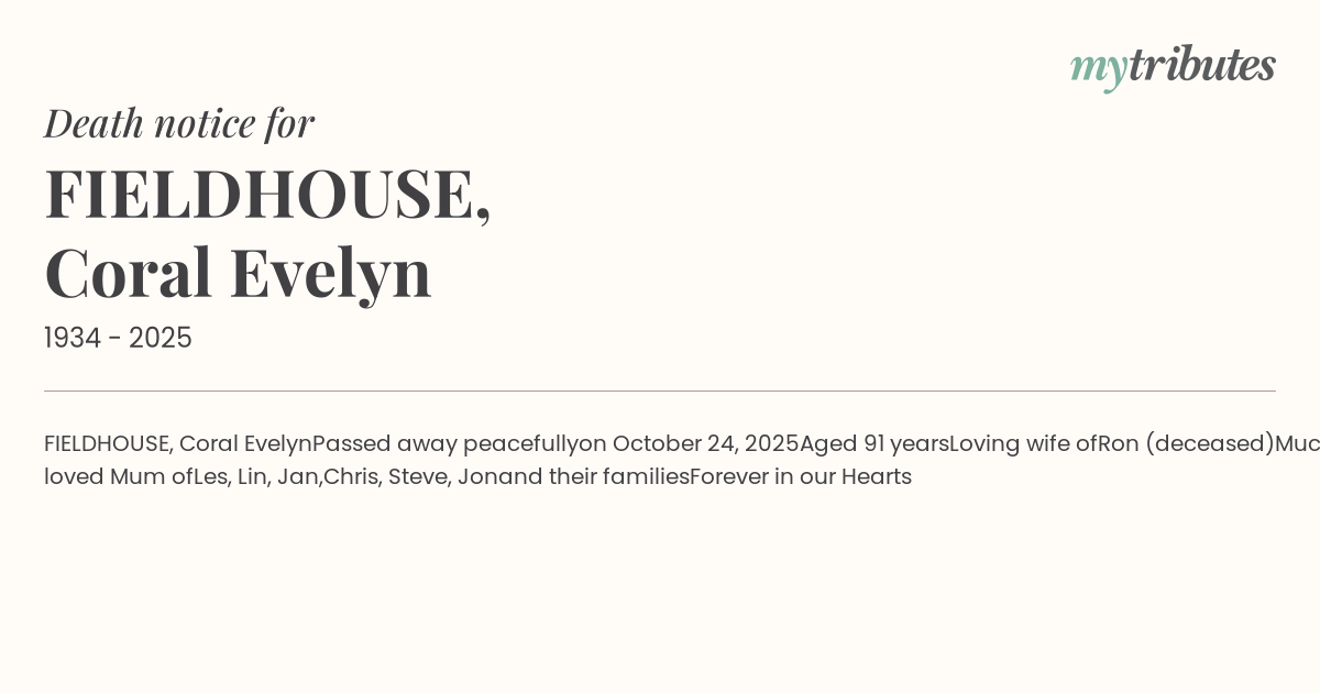 FIELDHOUSE, Coral Evelyn