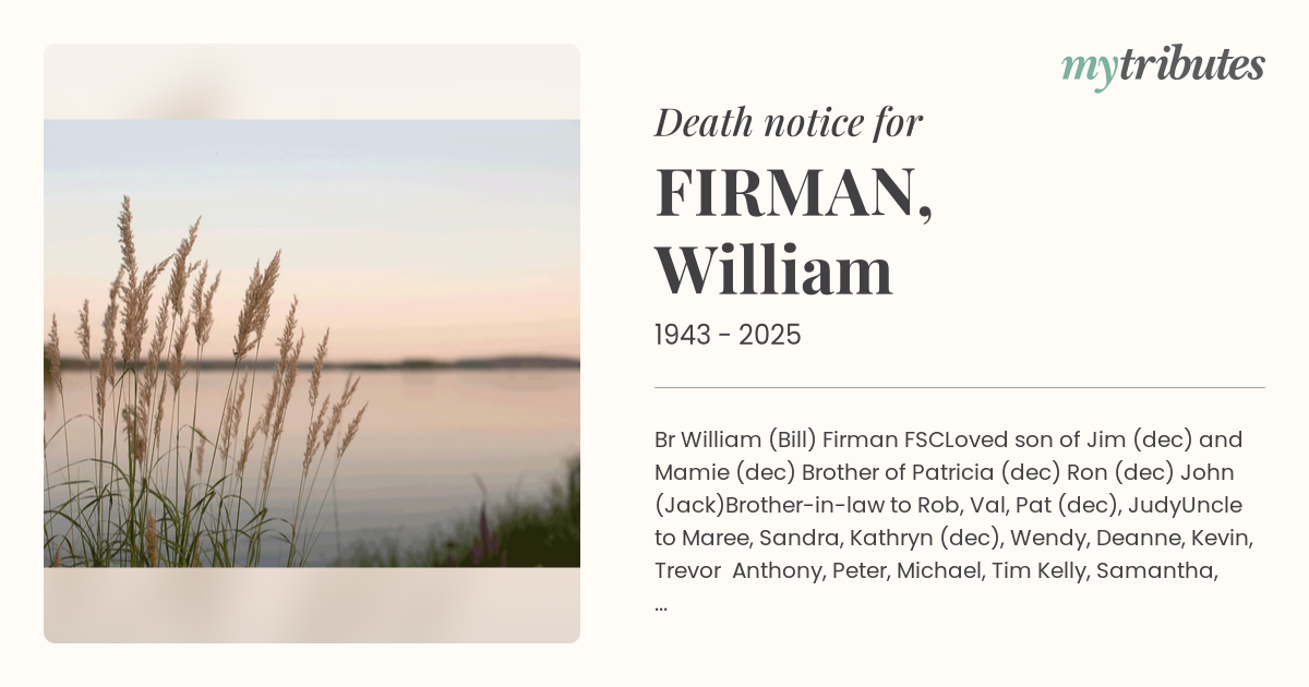 Uncle to Maree, Sandra, Kathryn (dec), Wendy, Deanne, Kevin, Trevor
