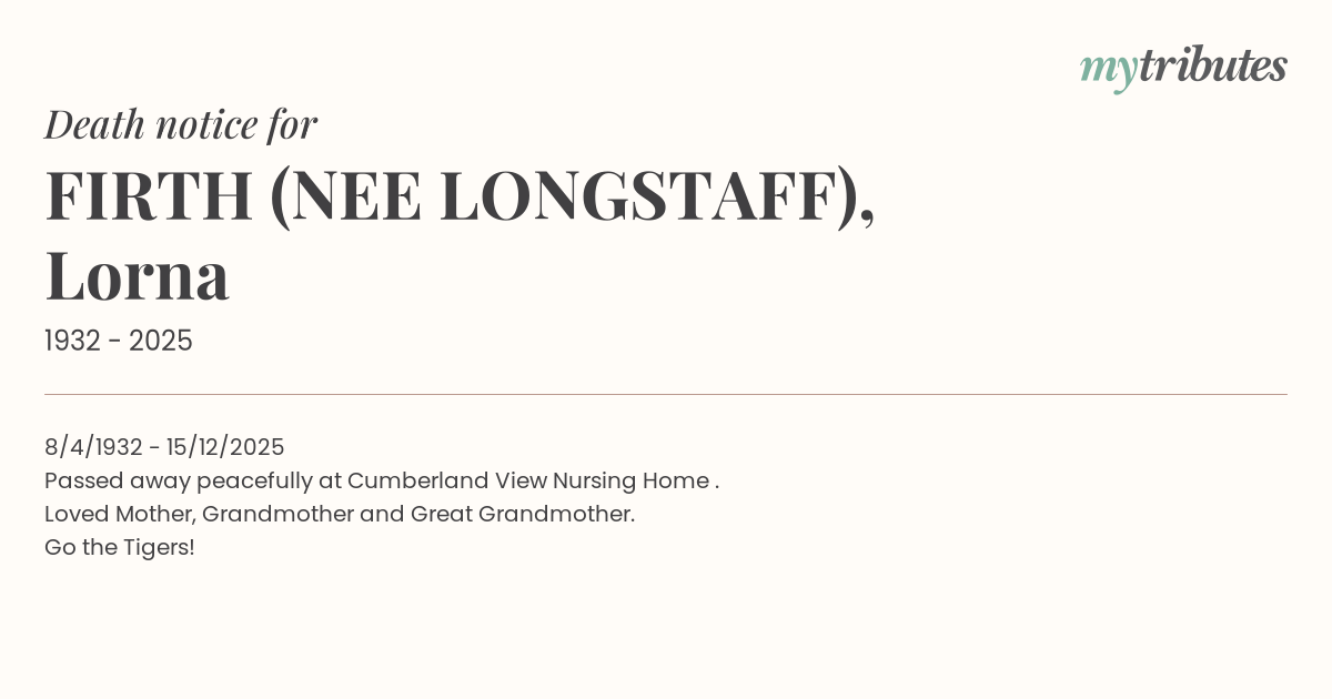 Passed away peacefully at Cumberland View Nursing Home .