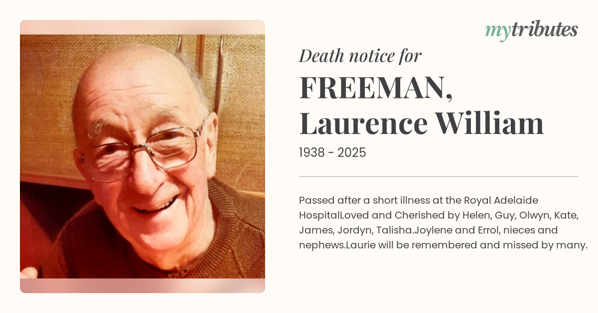 Loved and Cherished by Helen, Guy, Olwyn, Kate, James, Jordyn, Talisha.