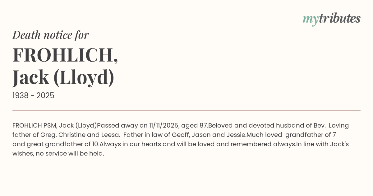 FROHLICH PSM, Jack (Lloyd)