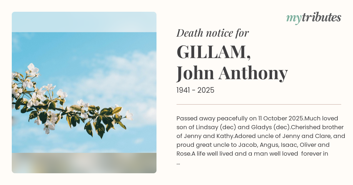 Much loved son of Lindsay (dec) and Gladys (dec).