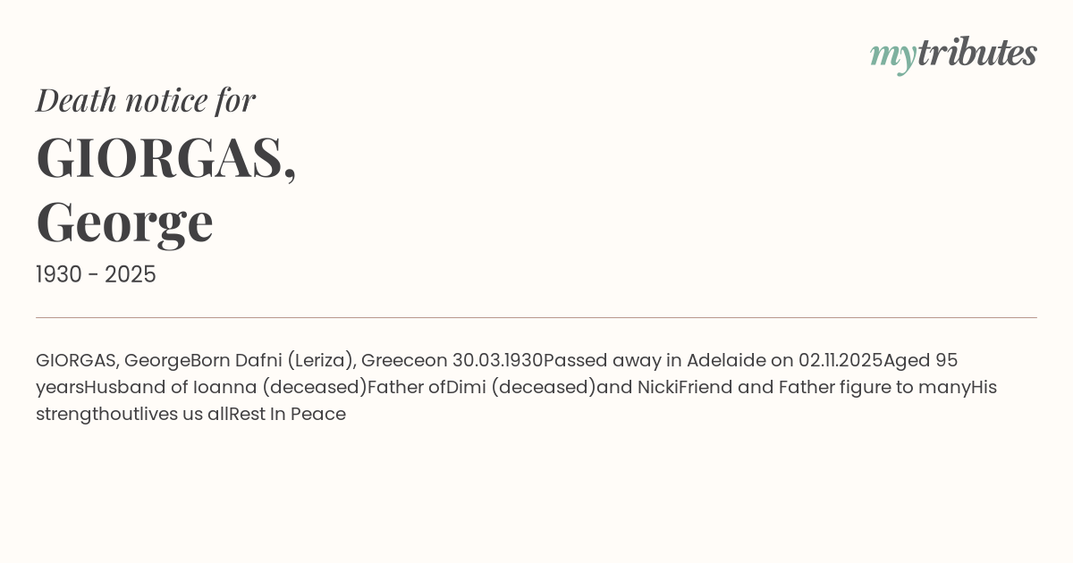 Passed away in Adelaide on 02.11.2025