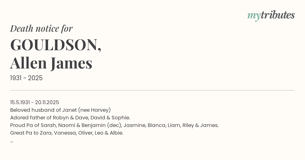 Adored father of Robyn & Dave, David & Sophie.