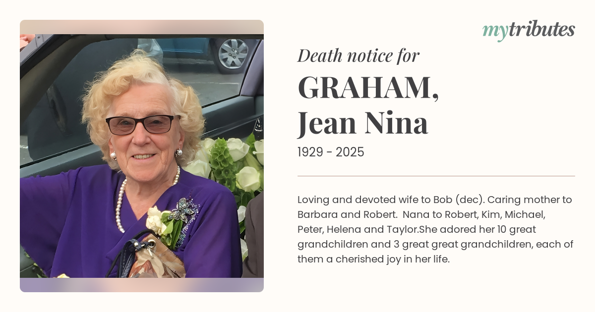Nana to Robert, Kim, Michael, Peter, Helena and Taylor.