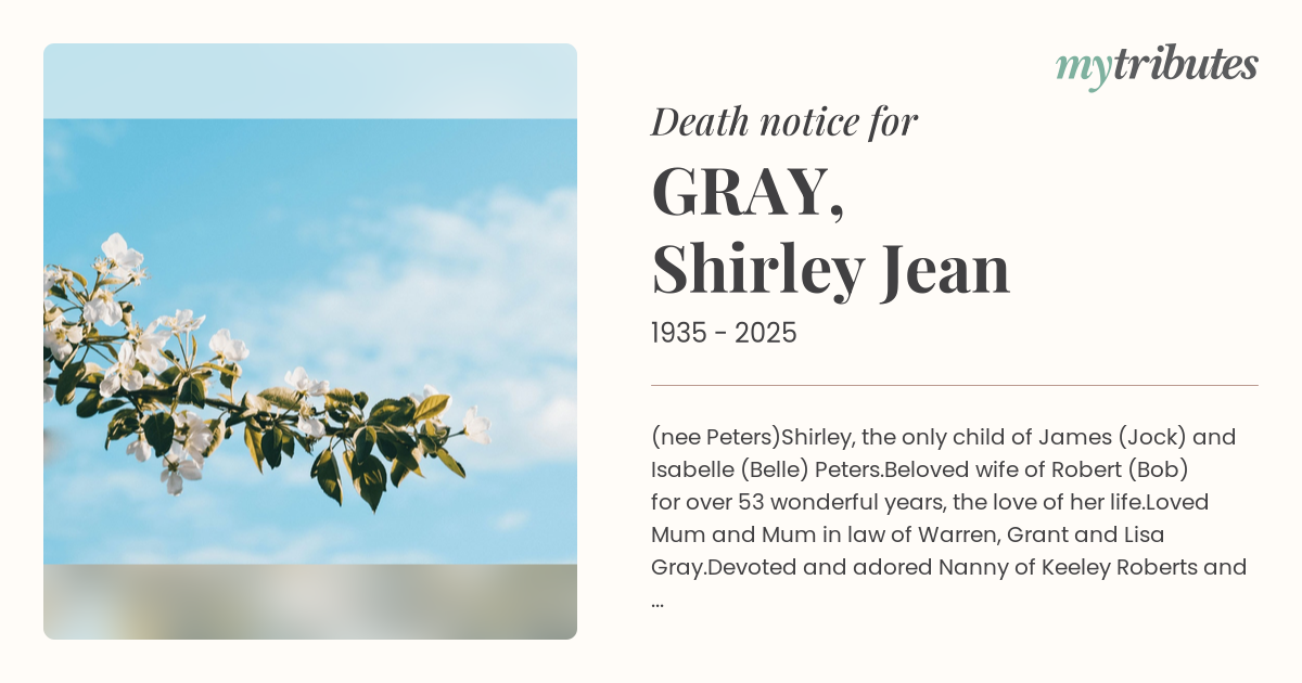 Loved Mum and Mum in law of Warren, Grant and Lisa Gray.