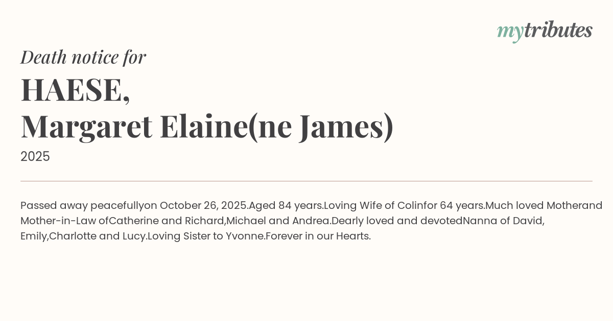 Passed away peacefully