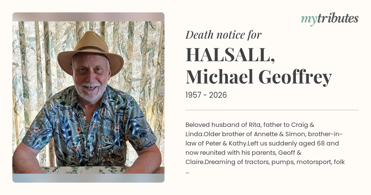 Left us suddenly aged 68 and now reunited with his parents, Geoff & Claire.