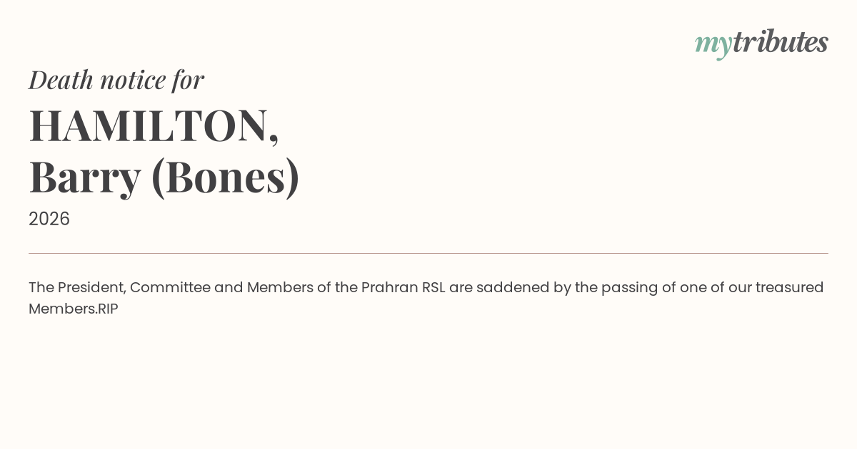 The President, Committee and Members of the Prahran RSL are saddened by the passing of one of our treasured Members.