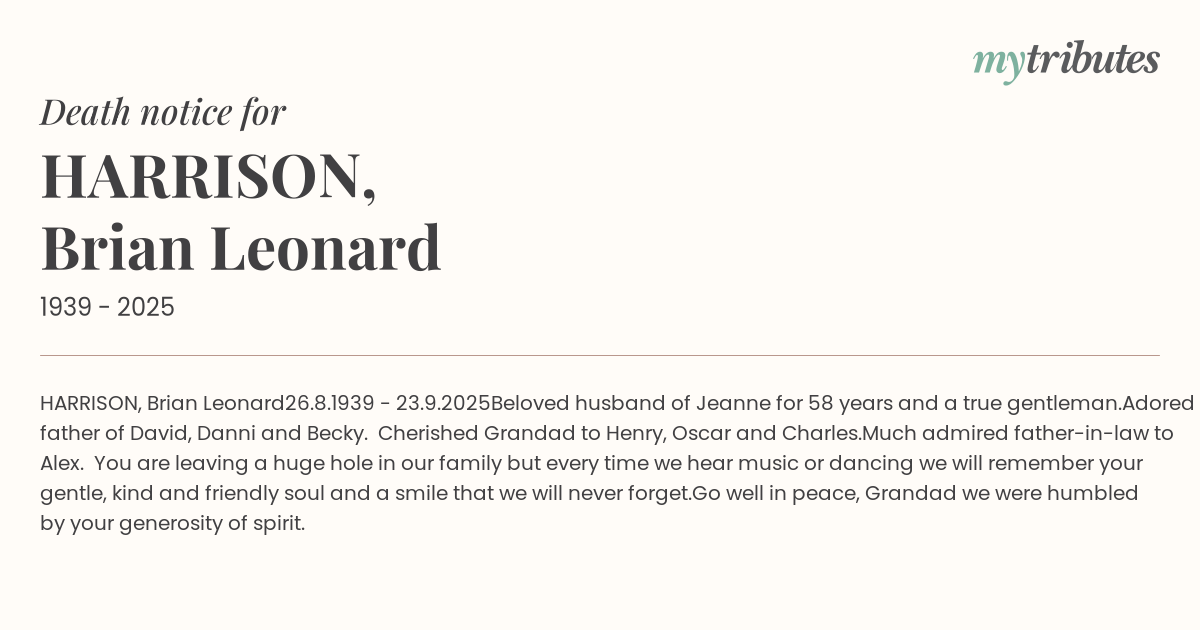 HARRISON, Brian Leonard