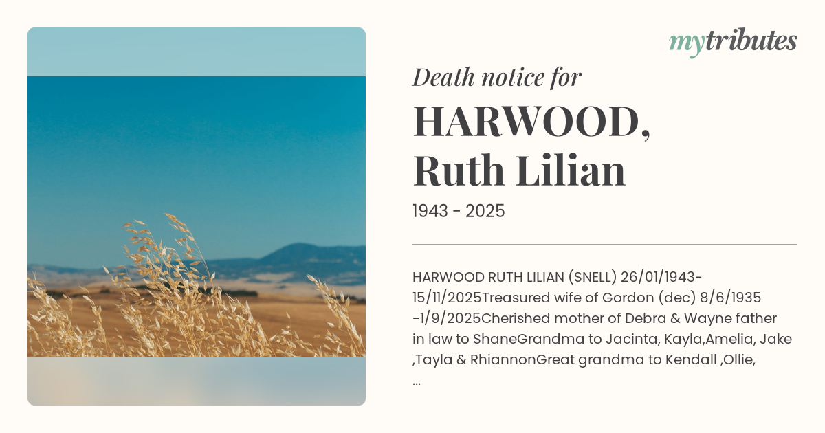 HARWOOD RUTH LILIAN (SNELL) 26/01/1943- 15/11/2025