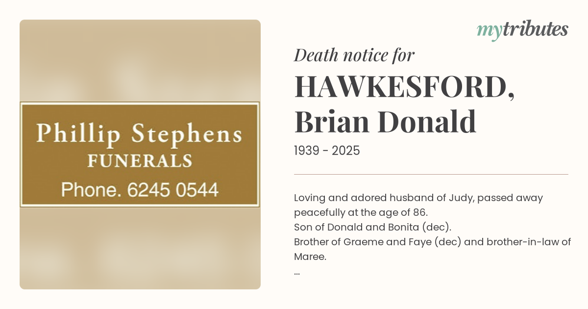 Brother of Graeme and Faye (dec) and brother-in-law of Maree.