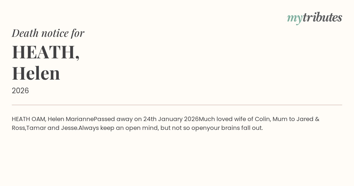 HEATH OAM, Helen Marianne