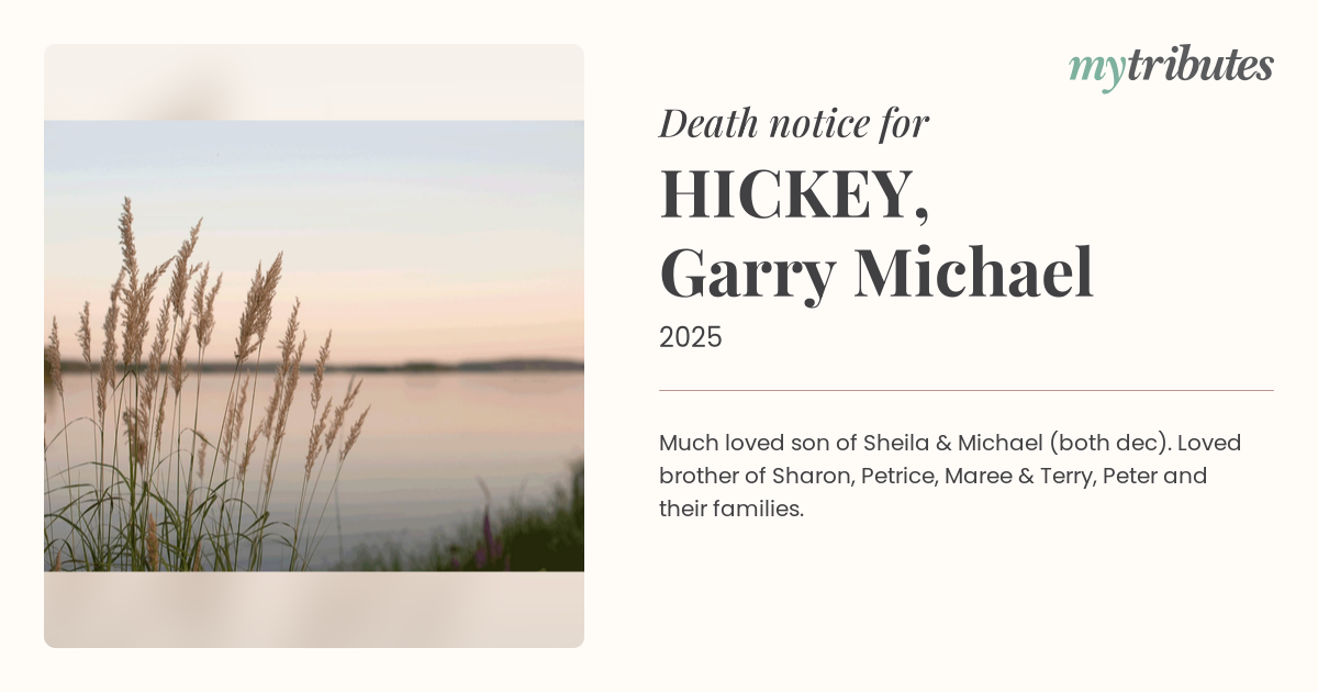 Much loved son of Sheila & Michael (both dec). Loved brother of Sharon, Petrice, Maree & Terry, Peter and their families.