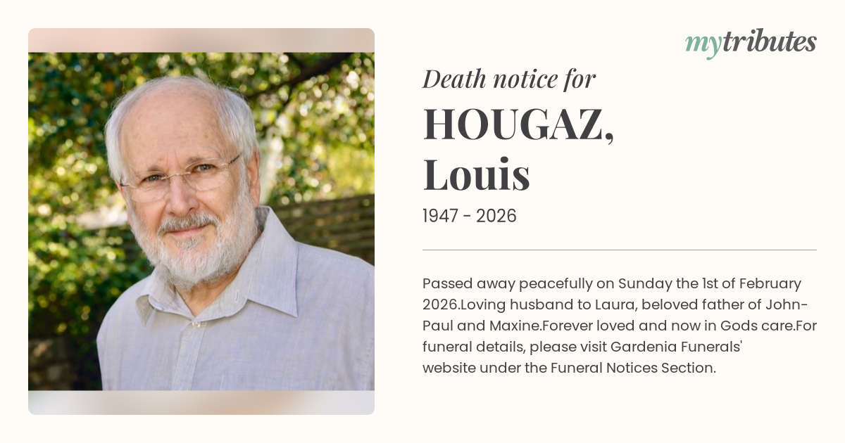 Passed away peacefully on Sunday the 1st of February 2026.