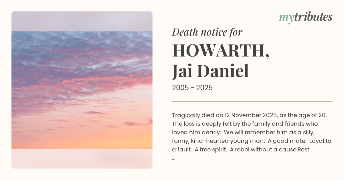 Tragically died on 12 November 2025, as the age of 20. The loss is deeply felt by the family and friends who loved him dearly.