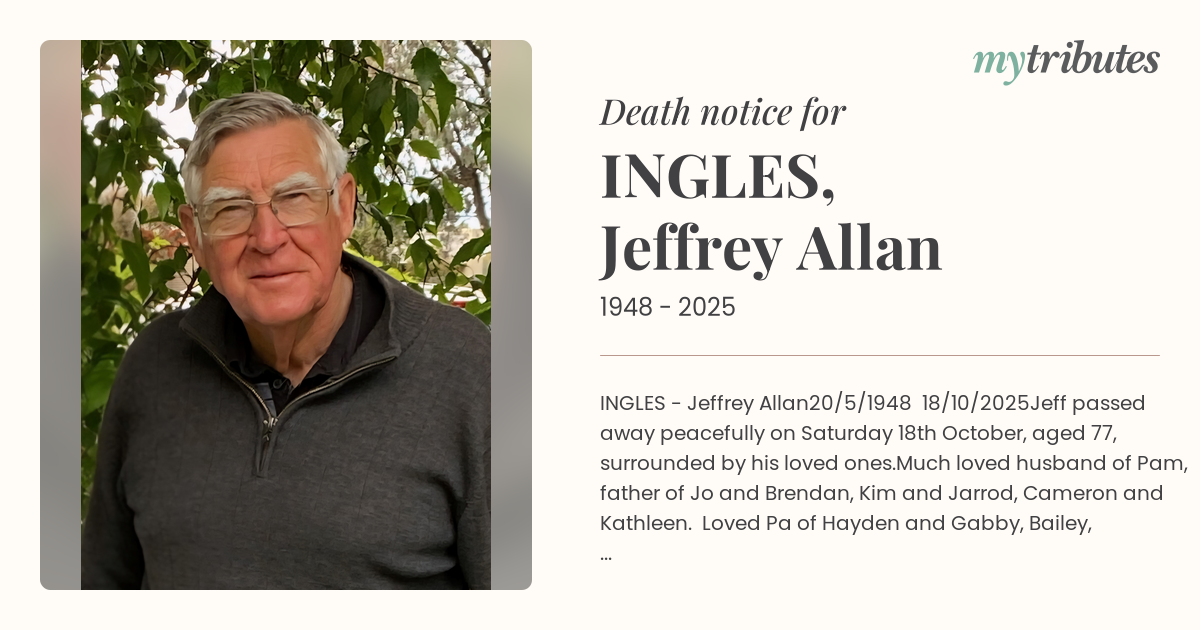 Jeff passed away peacefully on Saturday 18th October, aged 77, surrounded by his loved ones.