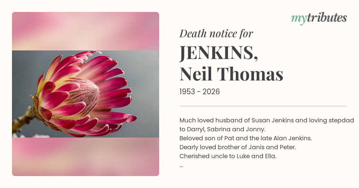 Beloved son of Pat and the late Alan Jenkins.