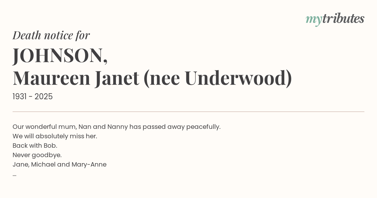 Our wonderful mum, Nan and Nanny has passed away peacefully.