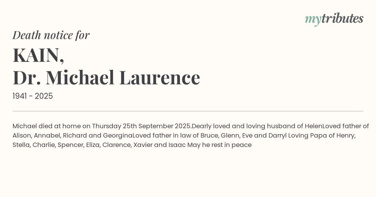Michael died at home on Thursday 25th September 2025.