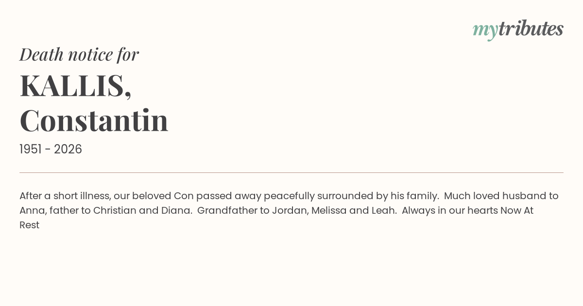 After a short illness, our beloved Con passed away peacefully surrounded by