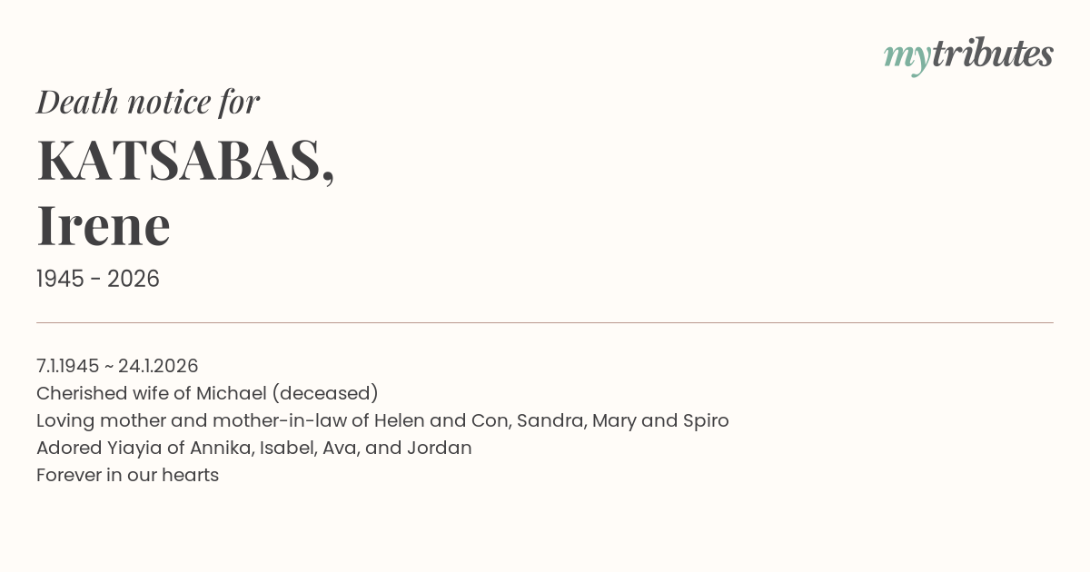 Adored Yiayia of Annika, Isabel, Ava, and Jordan Forever in our hearts