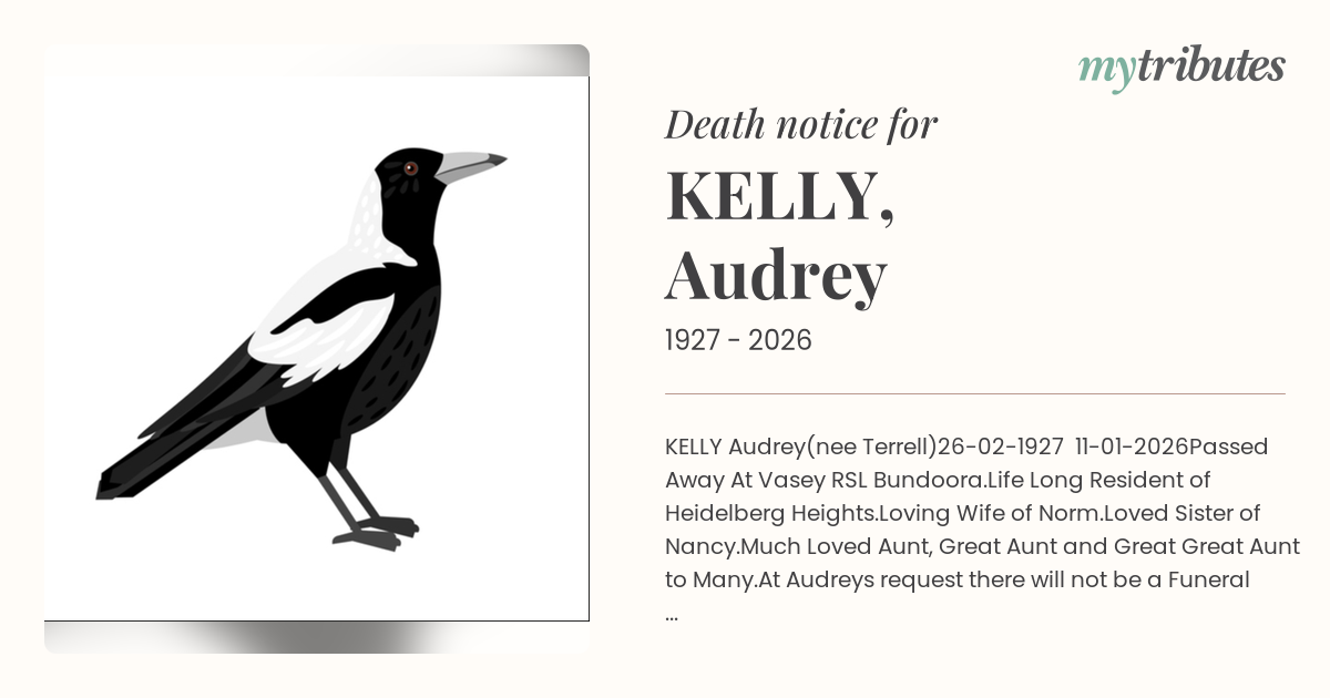 At Audrey’s request there will not be a Funeral just a Private Cremation.