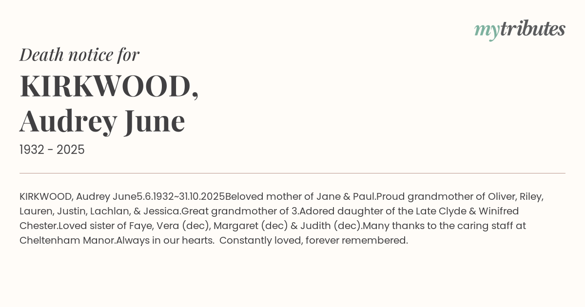 KIRKWOOD, Audrey June