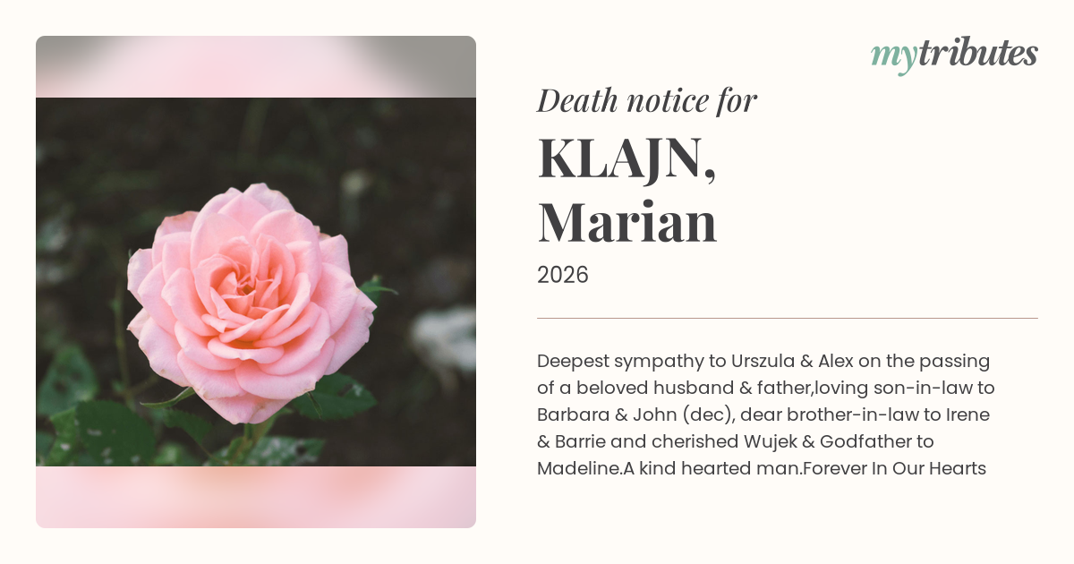 Deepest sympathy to Urszula & Alex on the passing of a beloved husband & father,