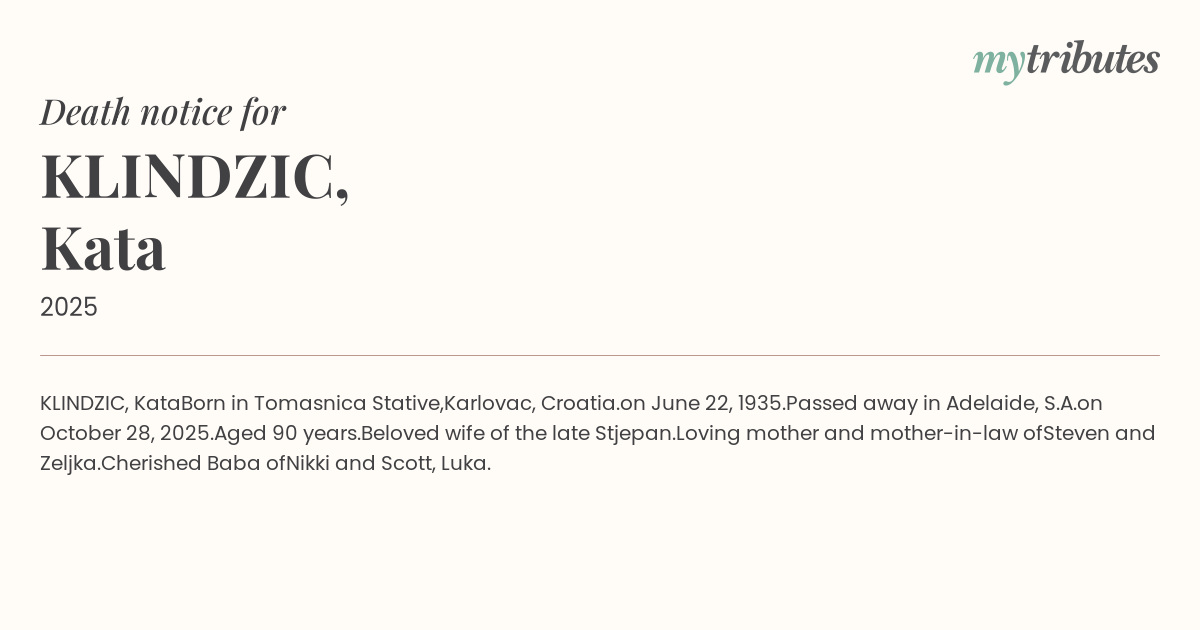 Beloved wife of the late Stjepan.