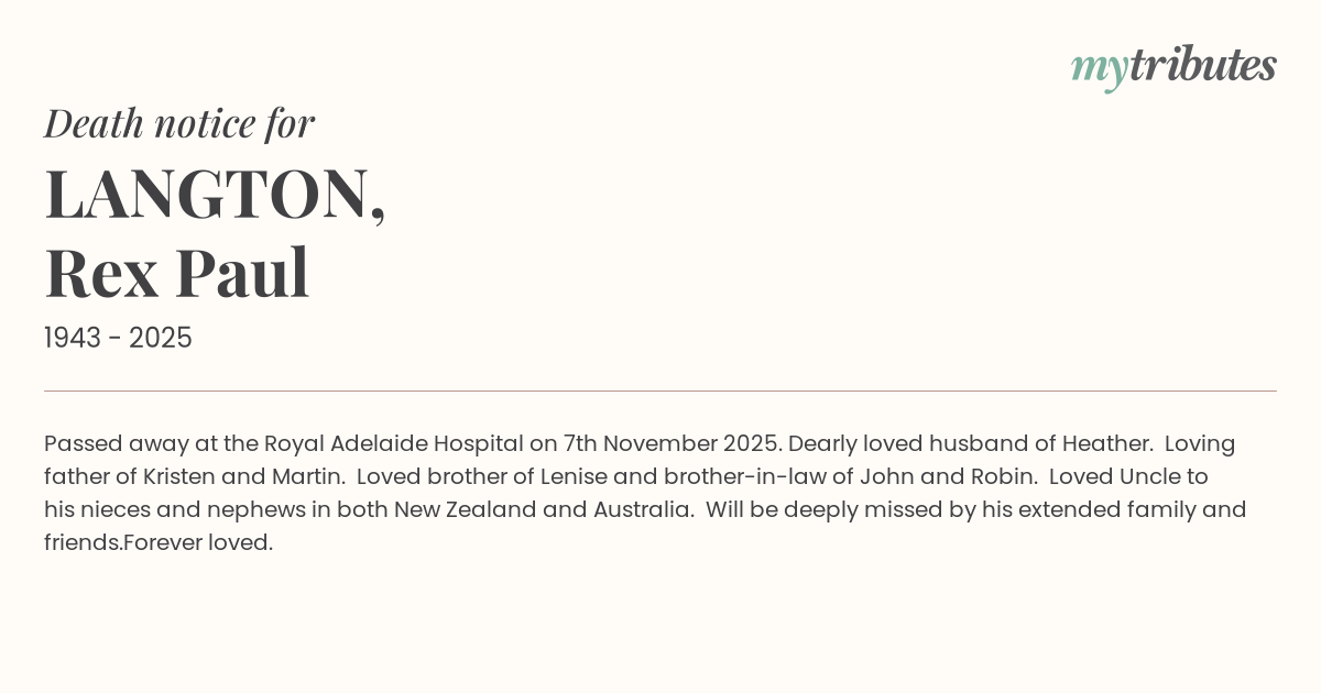 Passed away at the Royal Adelaide Hospital