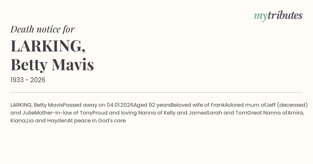LARKING, Betty Mavis
