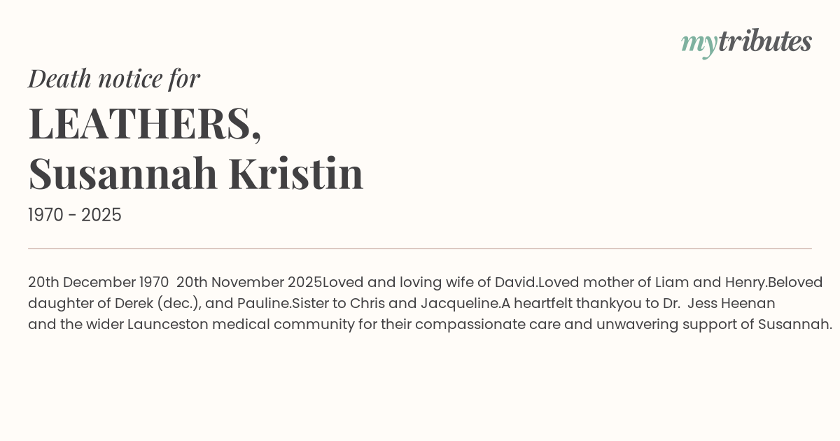 A heartfelt thankyou to Dr. Jess Heenan and the wider Launceston medical community for their compassionate care and unwavering support of Susannah.