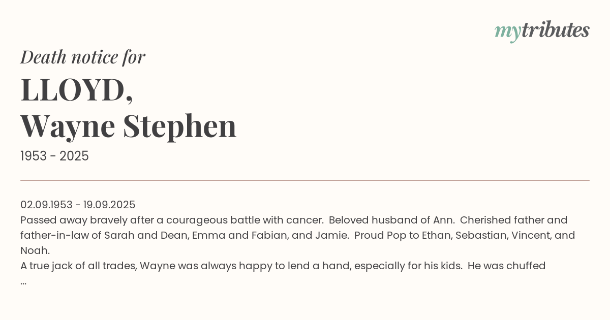 A true jack of all trades, Wayne was always happy to lend a hand, especially for his kids. He was chuffed about never missing a stag in 23 years. Wayne was always up for a chat, laugh or helping out with whatever needed doing.