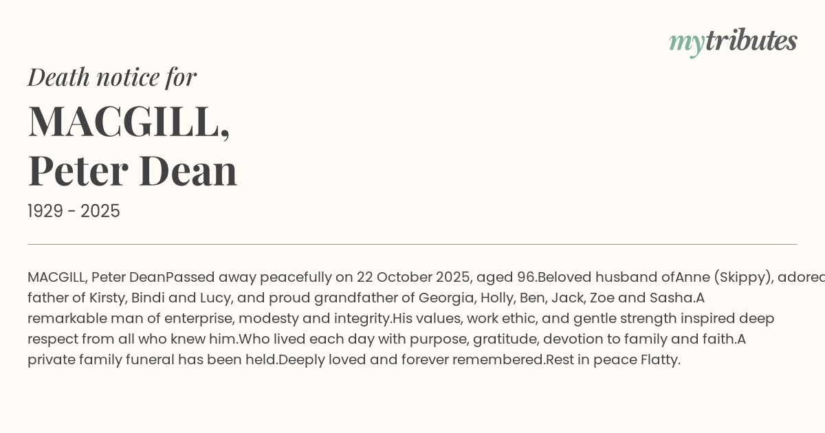 MACGILL, Peter Dean