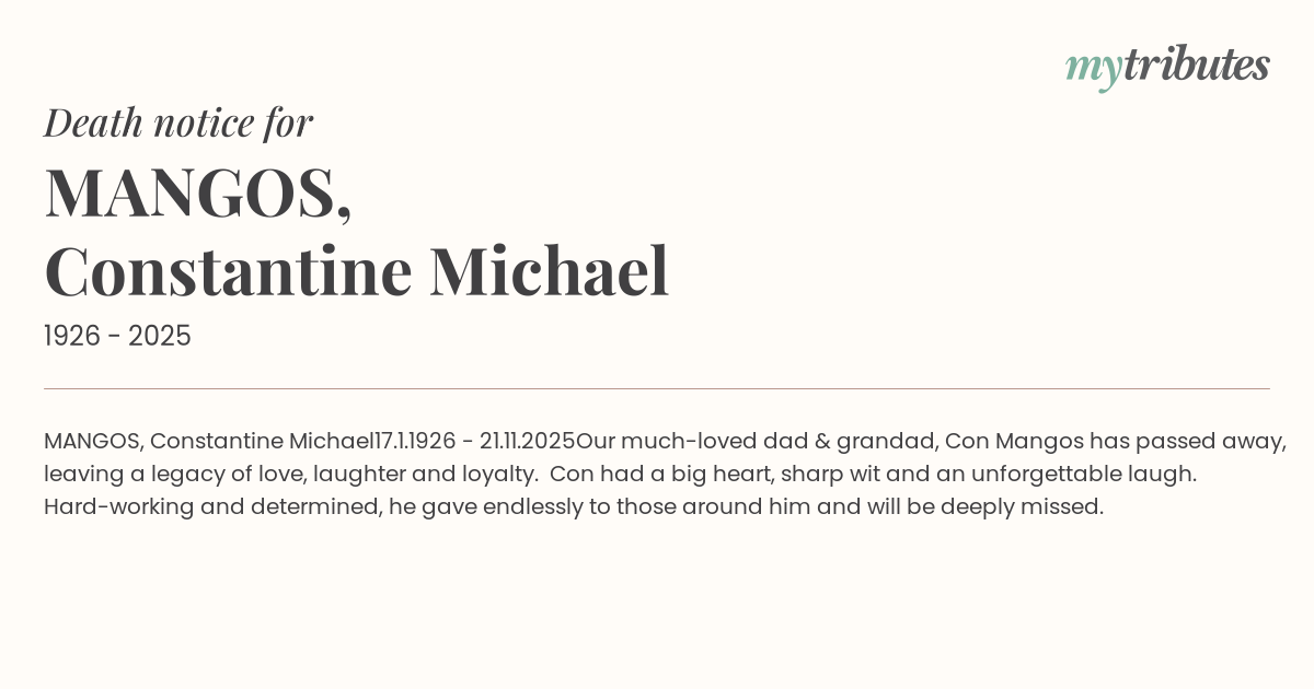 Our much-loved dad & grandad, Con Mangos