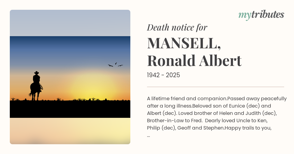 Beloved son of Eunice (dec) and Albert (dec). Loved brother of Helen and Judith (dec), Brother-in-Law to Fred.
