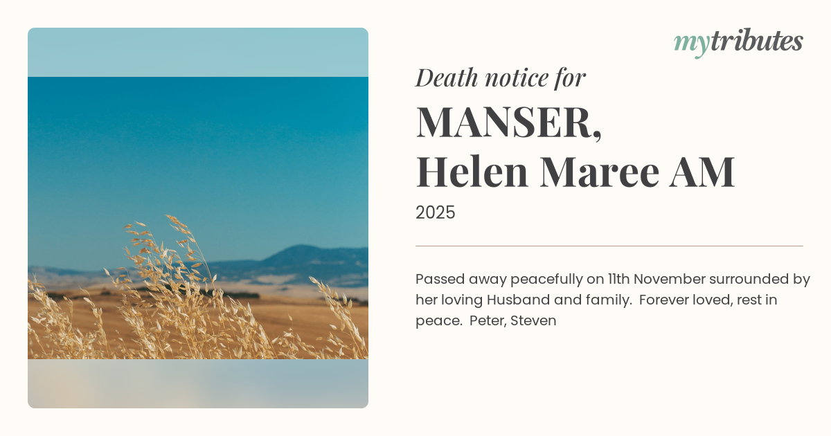 Passed away peacefully on 11th November surrounded by her loving Husband and family. Forever loved, rest in peace.