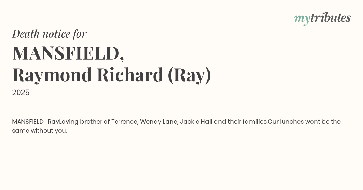 Loving brother of Terrence, Wendy Lane, Jackie Hall and