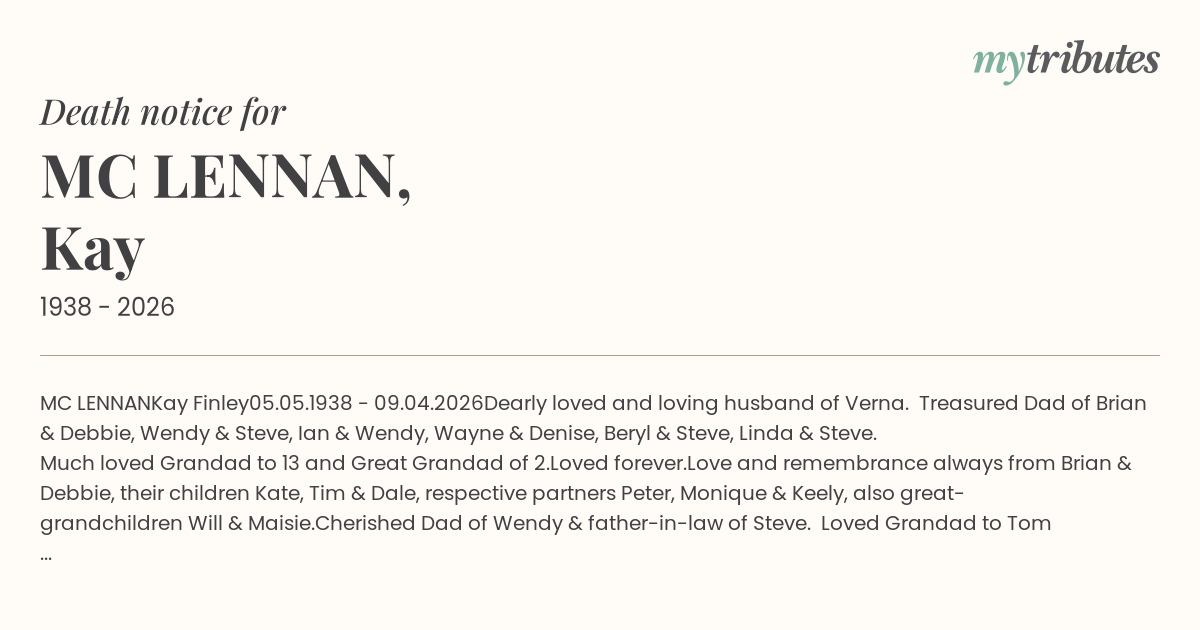Cherished Dad of Wendy & father-in-law of Steve. Loved Grandad to Tom & Charlie.