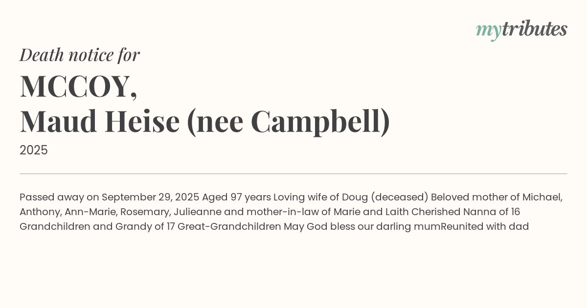 Cherished Nanna of 16 Grandchildren and Grandy of 17 Great-Grandchildren