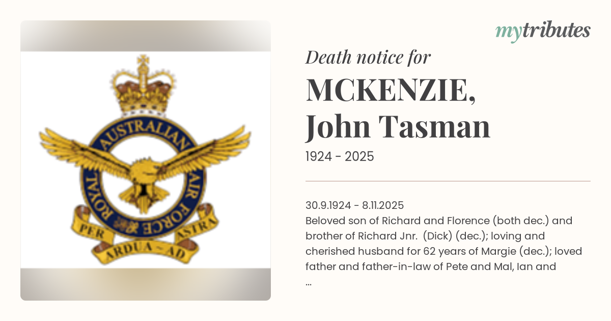 Beloved son of Richard and Florence (both dec.) and brother of Richard Jnr. (Dick) (dec.); loving and cherished husband for 62 years of Margie (dec.); loved father and father-in-law of Pete and Mal, Ian and Chris, and Andrew; loved grandfather of Talitha and Brad, Leigh and Dan; loved and adored great grandfather and 'Poppy John' to his cherished great granddaughters Everley, Rosie and Addie.