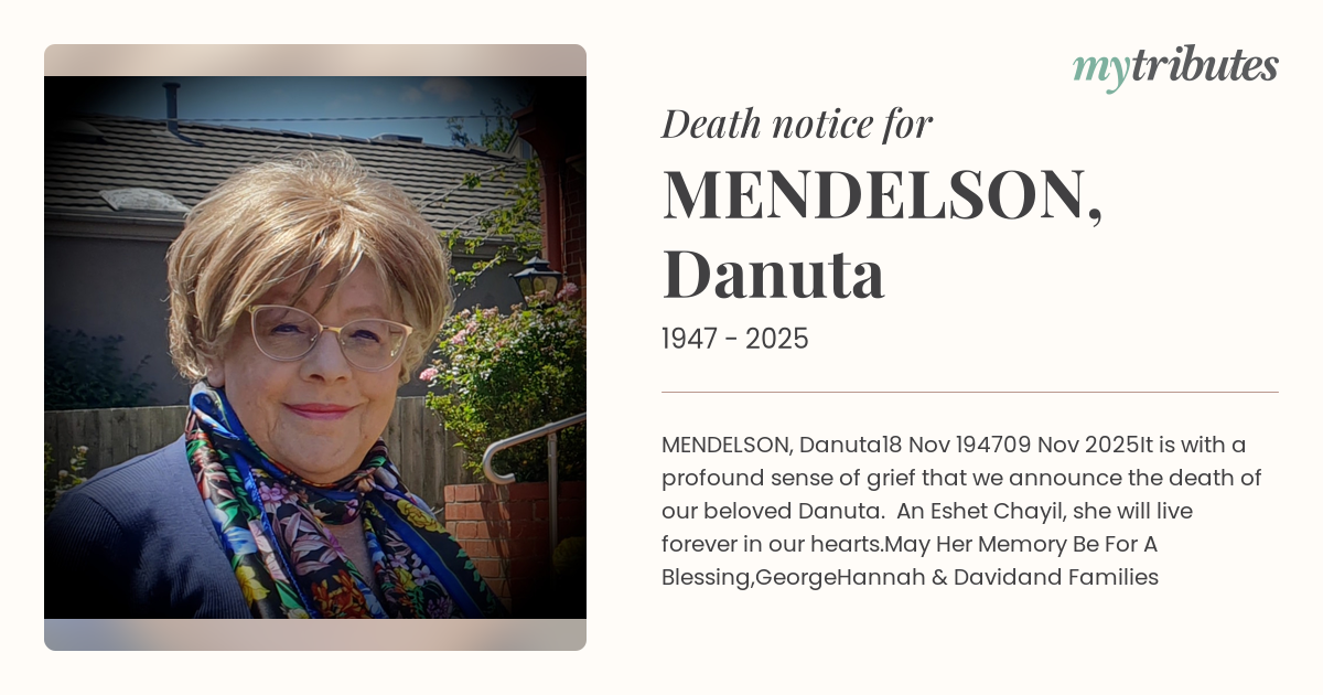 It is with a profound sense of grief that we announce the death of our beloved Danuta. An Eshet Chayil, she will live forever in our hearts.