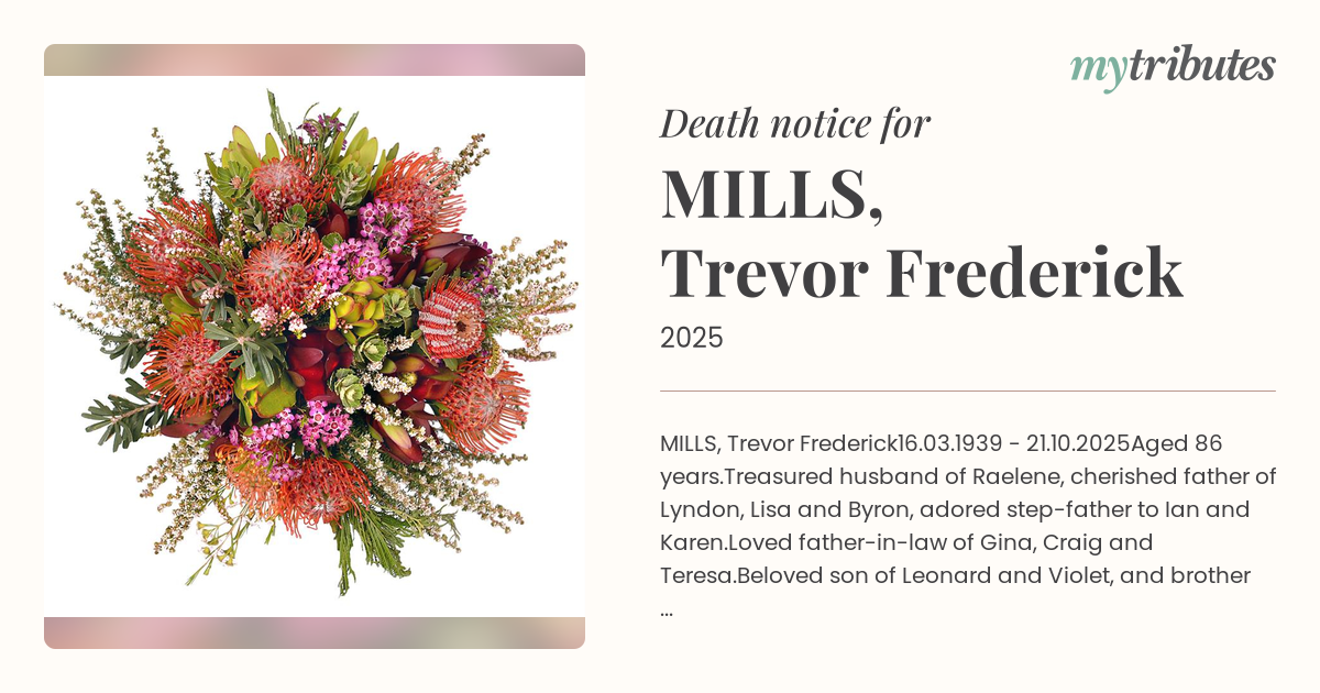 Leonard and Violet, and brother to John (deceased), Barry (deceased),