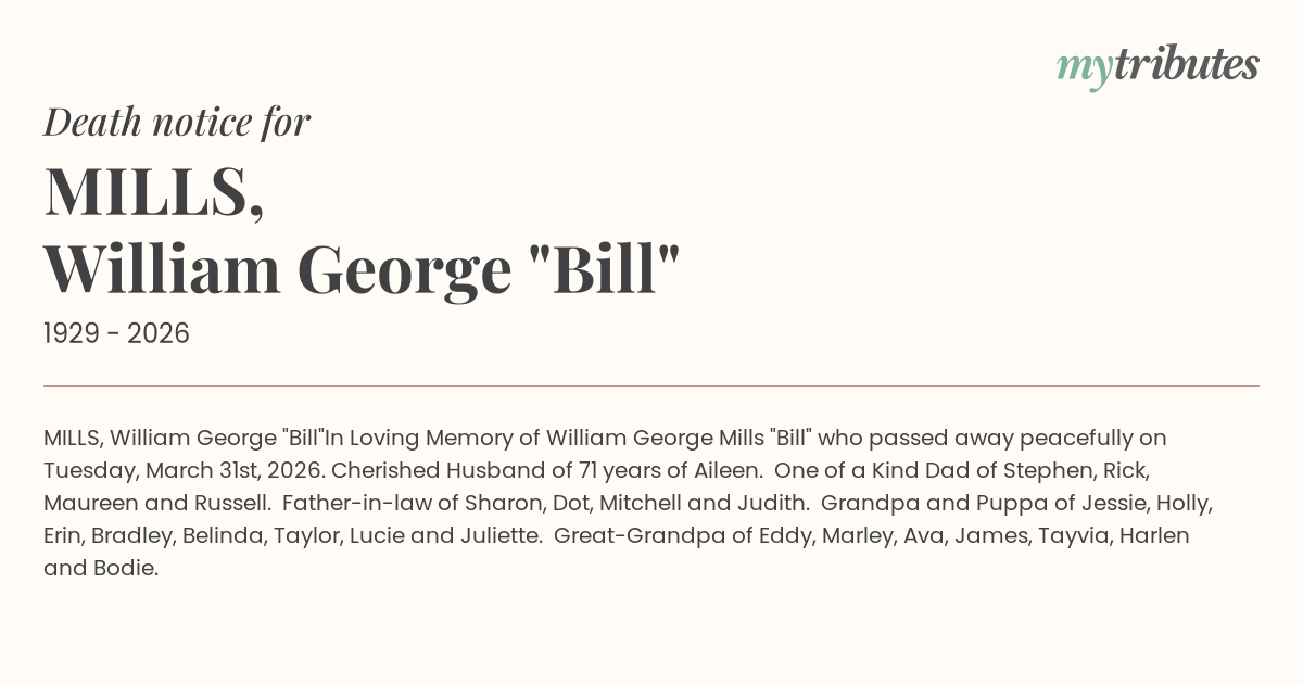 who passed away peacefully on Tuesday, March 31st, 2026.