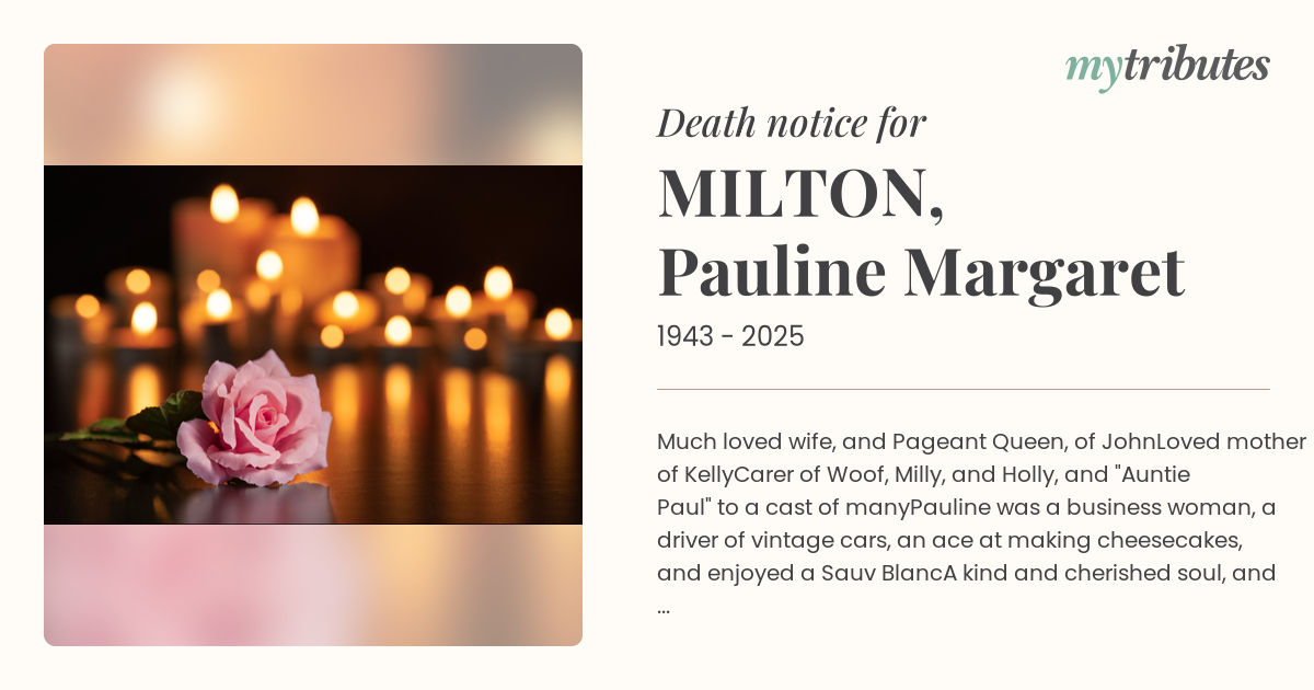 Pauline was a business woman, a driver of vintage cars, an ace at making cheesecakes, and enjoyed a Sauv Blanc