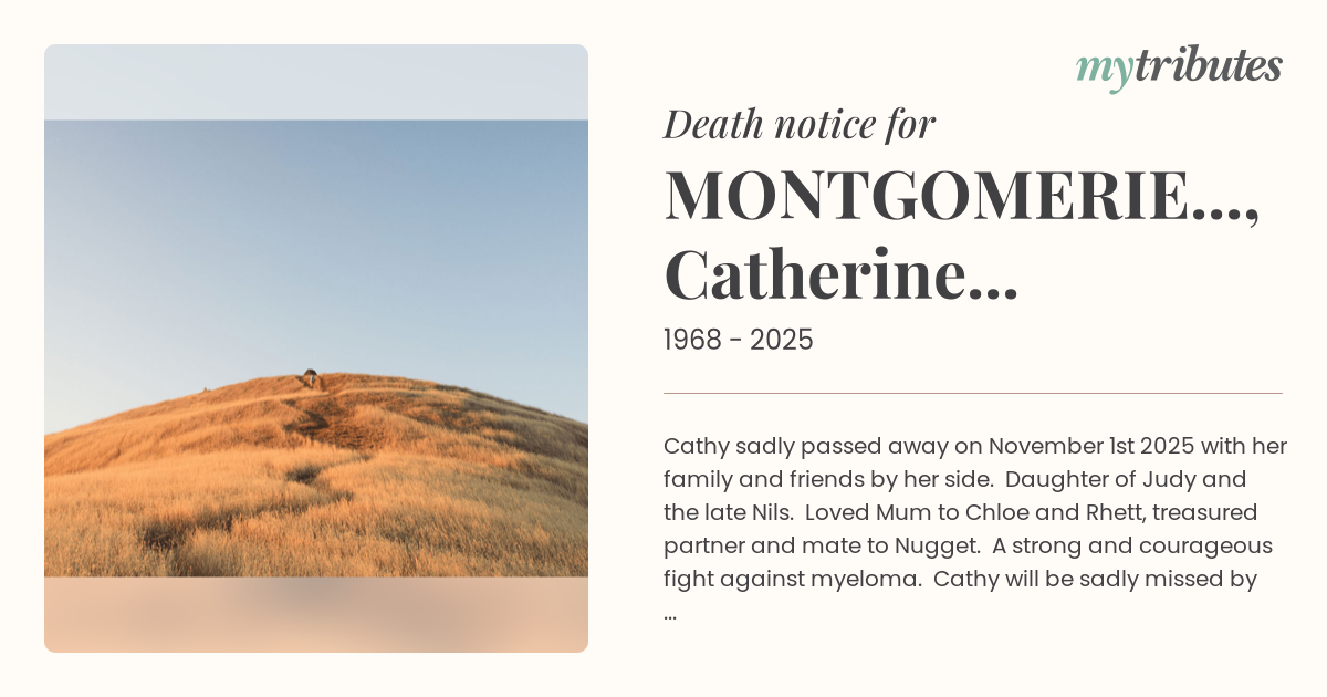 Cathy sadly passed away on November 1st 2025 with her family and friends by her side. Daughter of Judy and the late Nils. Loved Mum to Chloe and Rhett, treasured partner and mate to Nugget. A strong and courageous fight against myeloma. Cathy will be sadly missed by many. Rest now Cath. We love you.